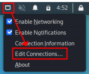 Ethernet 아이콘 위에서 마우스 오른쪽 버튼 클릭 후 Edit Connections를 선택한다.