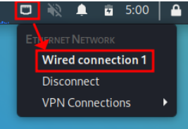Ethernet 아이콘->Wired connection1을 선택해 Disconnected해준다.