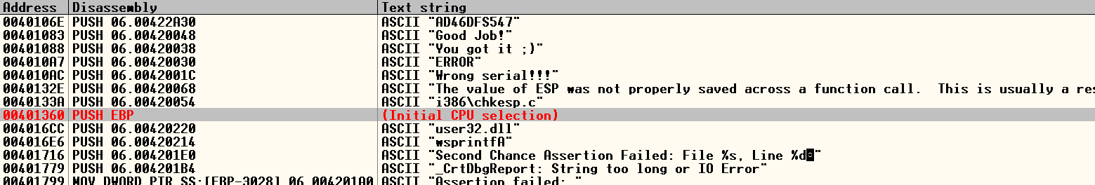 문자열만 볼 수 있는 곳을 가면, Good Job!위에 시리얼 넘버를 찾을 수 있다.
