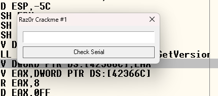 파일을 실행하면 위와 같이 시리얼 넘버를 입력하는 창이 뜨고, 오답 입력 시 "Wrong serial!!!"이라는 팝업이 뜨는 것을 알 수 있다.