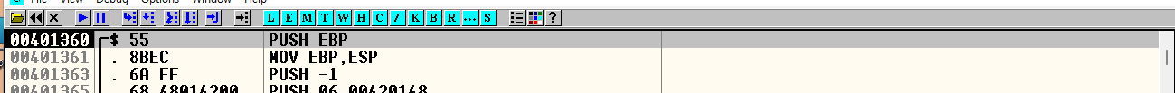 디버거로 실행 파일을 열면 OEP가 00401360이라는 것을 알 수 있다.