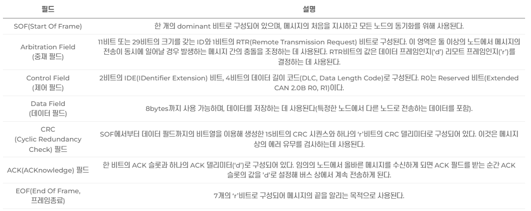 1. CAN 메시지에 있는 식별자(ID)의 길이에 따라 2가지 모드로 구별