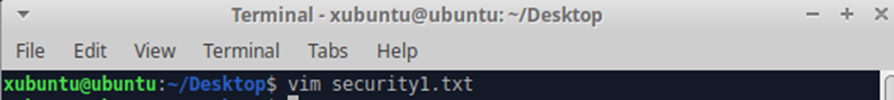 Xubuntu에서 security1.txt 파일을 생성한다.