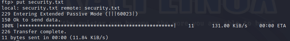 put명령으로 security.txt 파일을 xubuntu 서버(ftp 서버)로 이동시킨다.