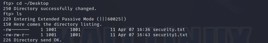 Kali에서 ftp를 실행해주고, Desktop으로 경로를 변경해준다.