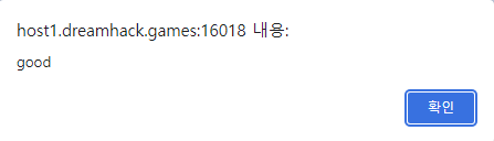 - xss 파라미터에 test 입력 후 제출 시, good이라는 팝업창이 뜬다.