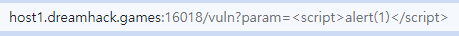 vuln 페이지에 /vuln?param=<svg/onload="alert('1')">를 입력해주면