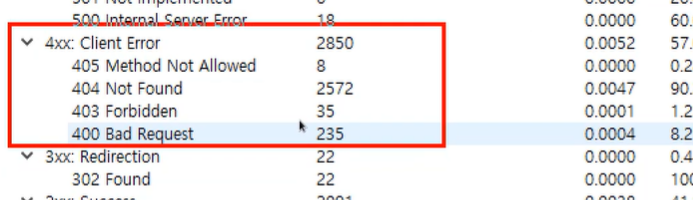 404 에러가 많이 뜬 것도 확인할 수 있었다.