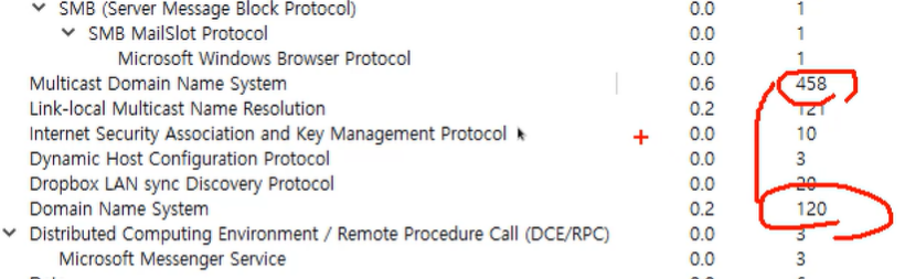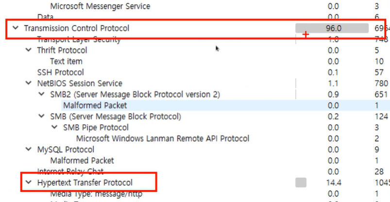 TCP > HTTP 프로토콜이 많다는 것을 알 수 있다.