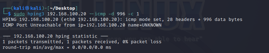 Kali에서 다시 공격을 시도한다. 이번엔 996으로 시도.