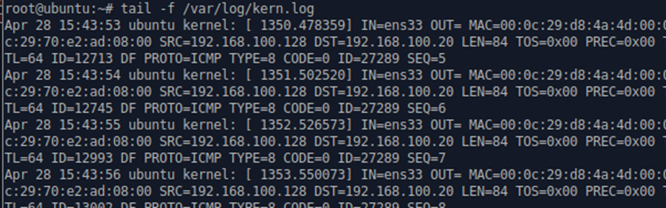 Xubuntu에서 iptables 차단 실시간 로그를 확인한다.