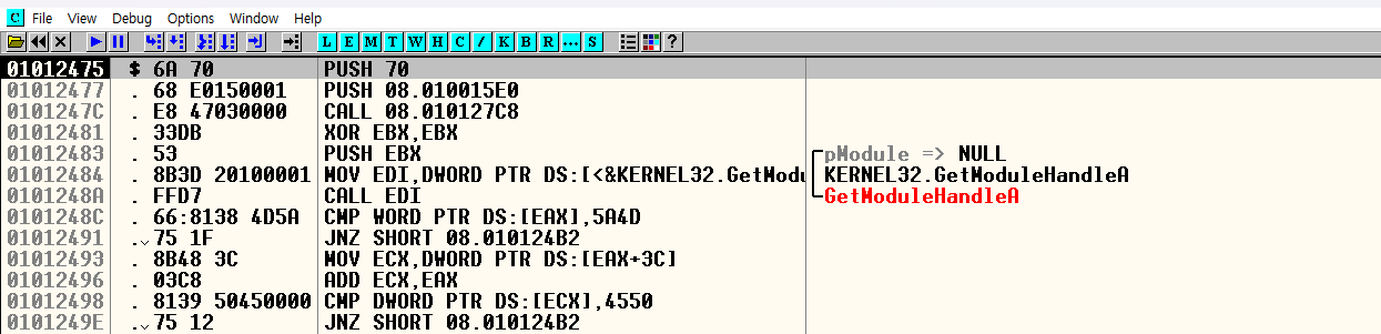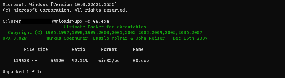 디버거로 언패킹한 실행 파일을 열면 OEP 값을 찾을 수 있다.