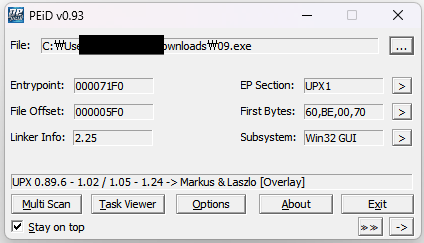 peid로 확인하니 upx로 패킹된 파일임을 알 수 있었다.