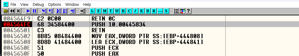 RETN 0C 다음에 BP를 걸어주고 RETN 0C를 실행해주면 RETN 0C 다음에 OEP가 나타난다.