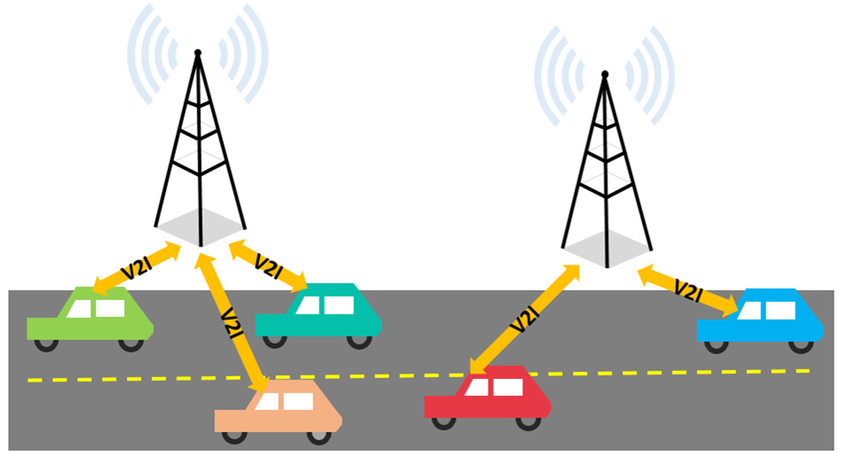 차량과 도로 인프라 간의 무선 데이터 교환.