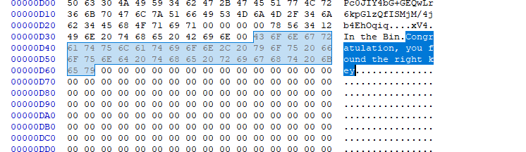 HxD로 파일을 열어 "Congratulation, you found the right key" 부분을 찾아주고,