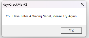 CodeEngn을 입력해주고, 임의로 serial값을 입력해봤다.