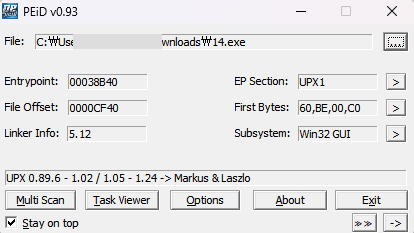 peid로 실행 파일을 확인해보니 UPX로 패킹되어 있다.