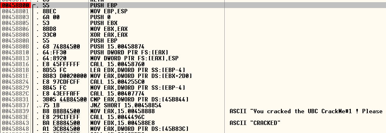 "CRACKED" 위쪽을 살펴보니 EAX의 값과 45B844 주소의 값을 비교하는 코드가 있었다.