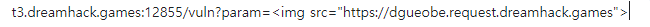 vuln 페이지의 검색창에서 스크립트 코드를 지우고 param에 img 태그를 입력하고 Dreamhack Tools의 Request Bin에서 생성한 링크를 입력하면