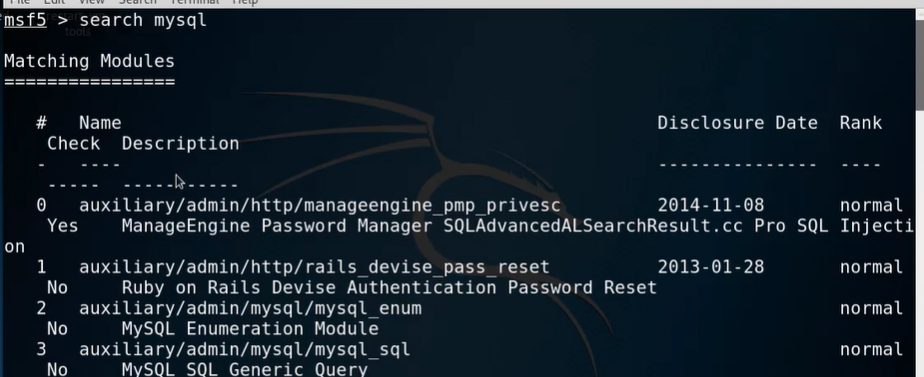metasploit으로 접속해 mysql을 검색해보면 mysql과 관련된 모듈들과 부가적인 모듈들을 확인할 수 있다.