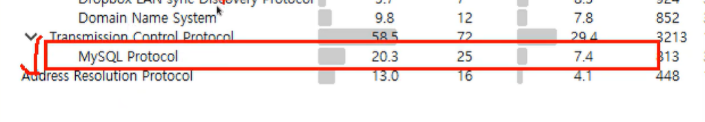 (현재는 우리가 캡쳐한 패킷이라 mysql이 뭔지 알지만 아무것도 모르는 상태에서는 프로토콜부터 살펴봐야한다고 함)