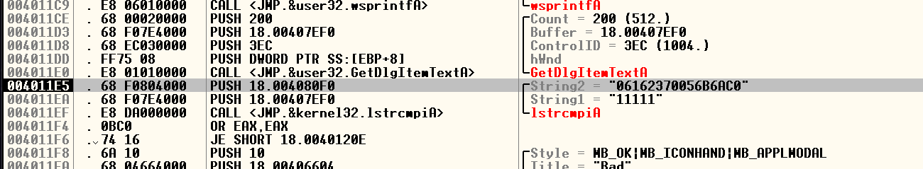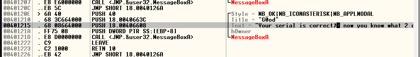 성공 문자열 위쪽을 찾아보니 입력한 Serial값과 올바른 Serial 값을 비교하는 코드를 발견할 수 있었다