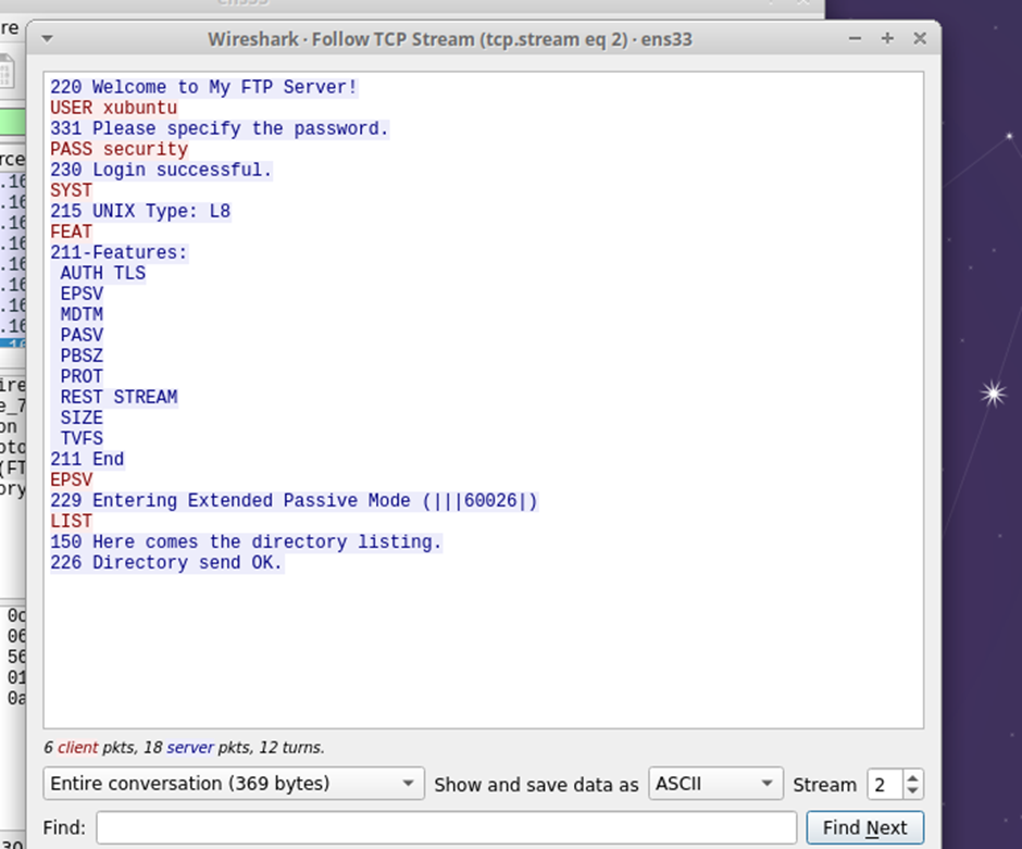 Xubuntu에서 wireshark > ens33 을 실행 후,
