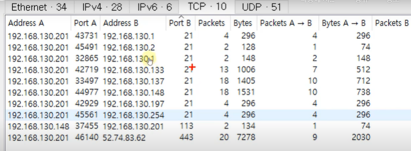 Conversation에서 포트 정보를 보면 21번으로 접근을 하고 있구나를 알 수 있다.