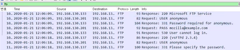 FTP 익명 연결 공격 패킷을 분석해보자.