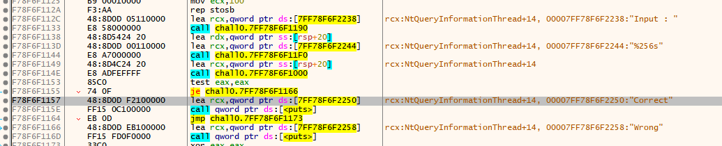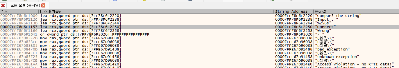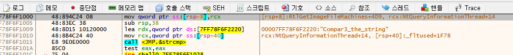 test eax,eax 위의 7FF78F6F1000의 위치에서 정답과 비교하는 것 같으니 이동해보자