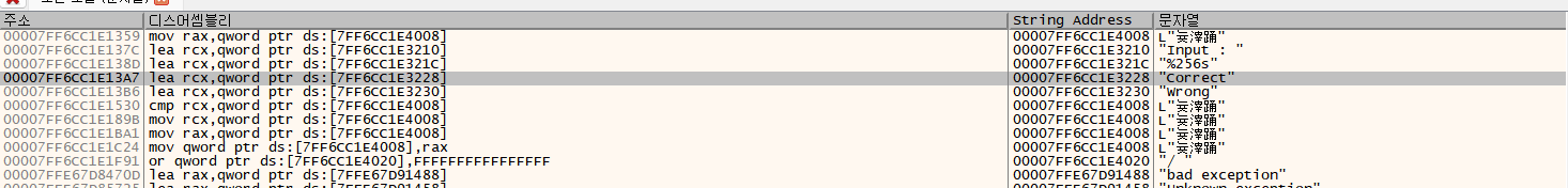 rev-basic-0 문제와 같이 "correct"라는 문자열을 찾아야하니 문자열로 이동하자