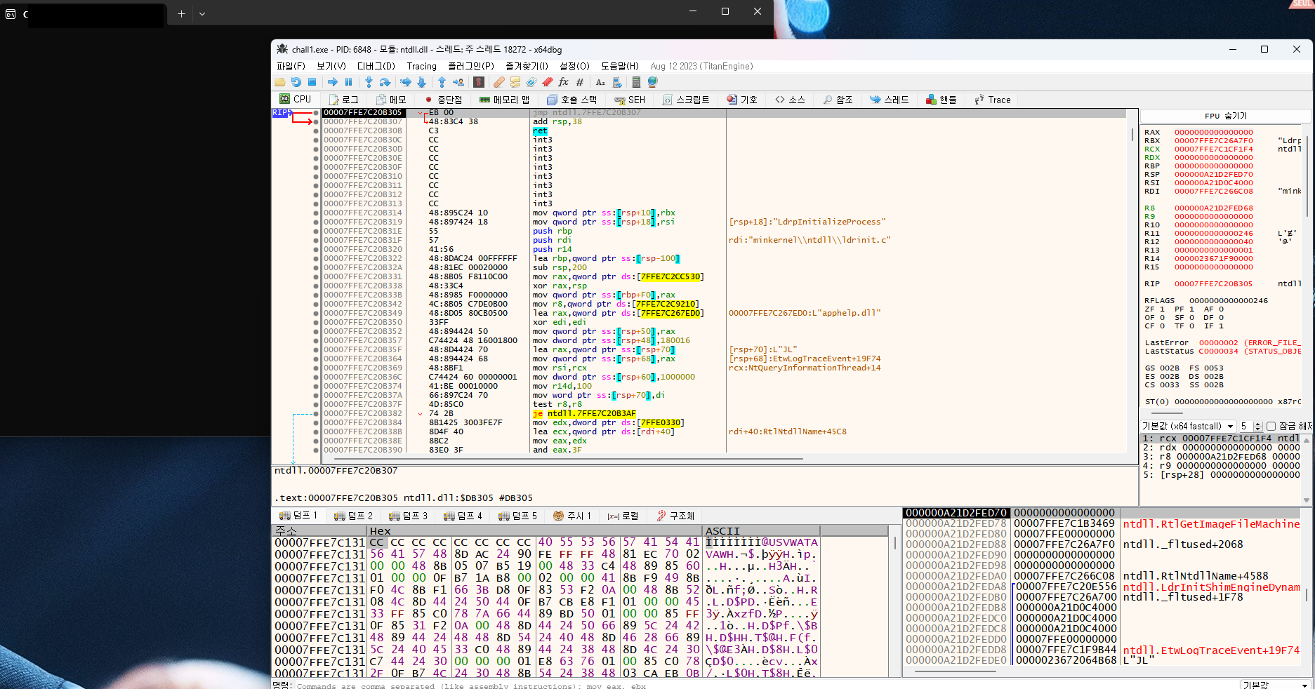 test 위를 보면 7FF6CC1E1000 위치에서 정답과 비교하는 것을 알 수 있다.