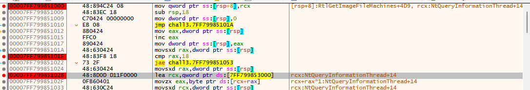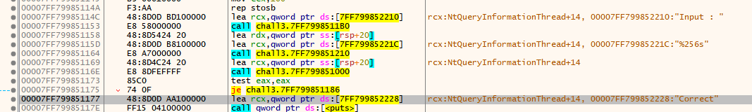 rcx(input값)와 7FF799853000의 값을 한 글자씩 18번 비교한다.