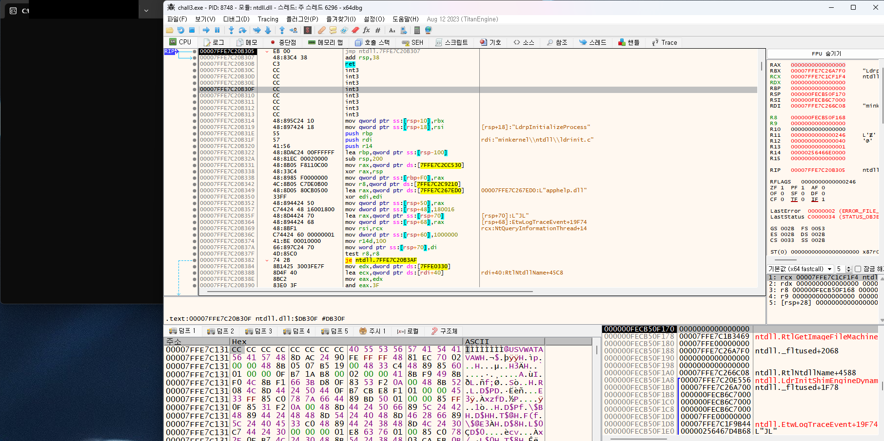 문제 파일을 디버거로 실행하면 위와 같이 뜬다.