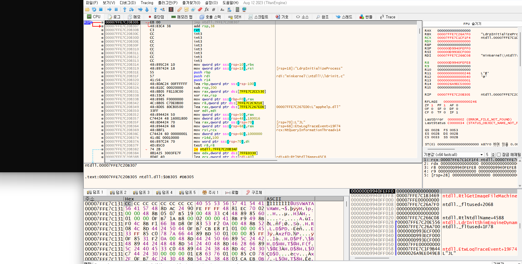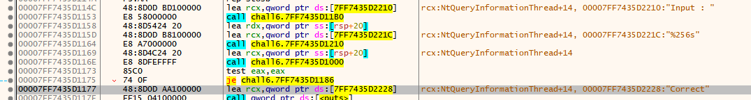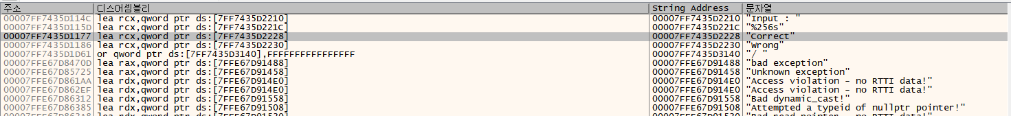 test eax,eax 위 코드의 7FF7435D1000의 위치에 정답이 있을 것 같다.