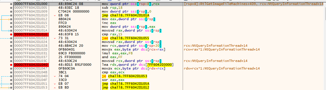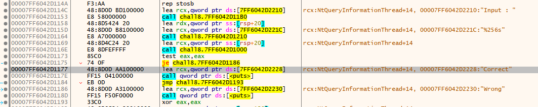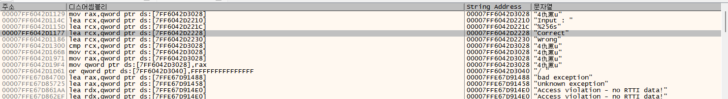 따라서 그 위의 코드에 있는 7FF6042D1186에 정답이 있을 것 같으니 살펴보자