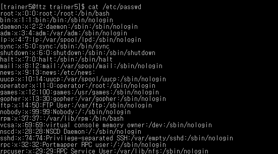 cat /etc/passwd : 모든 사용자들의 정보