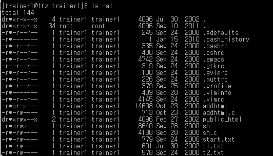 ls -al : 숨겨진 파일 & 디렉토리 출력