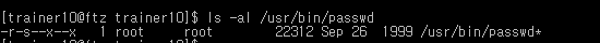 서버 전체에서 SetUID가 걸린 파일을 찾는 방법은 find / -perm -4000 명령을 입력하면 된다.