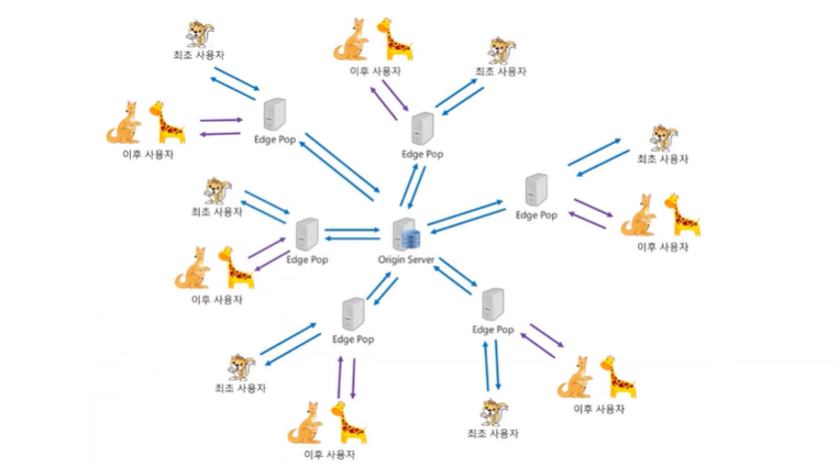 많은 사용자들이 Origin 서버와 통신하는 것이 아니라 Edge Pop서버와 통신을 한다.