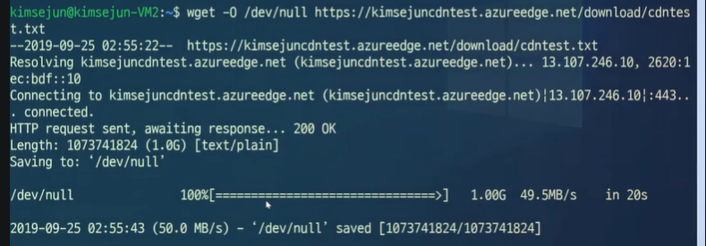 이번엔 다른 우분투로 미국 동부 Region에 있는 VM으로 Azure CDN을 통해 1GB 데이터를 다운받아보자