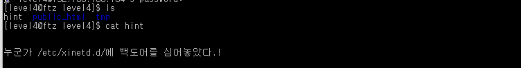 hint를 확인해보니 /etc/xinetd.d/에 백도어를 심어놓았다는 것을 알 수 있다.