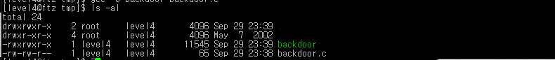 backdoor.c를 실행파일 backdoor로 변경해준 후,