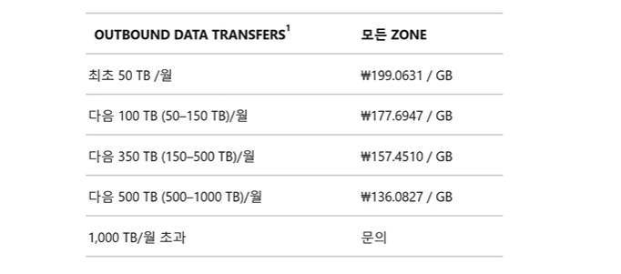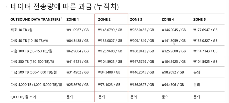 각 zone의 Pop 서버에서 Data transfer out에 대한 과금이 다른 것이다.