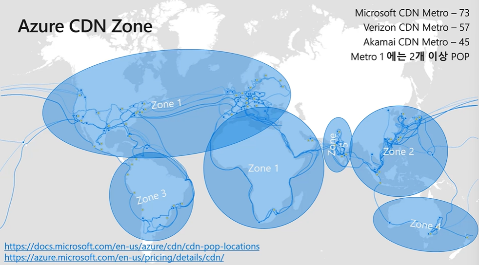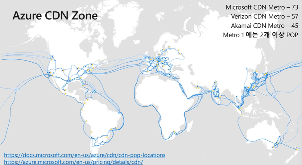 파란색 점으로 표시된 것이 Microsoft CDN에 대한 Metro 이고, 파란 선은 Microsoft가 사용하고 있는 전용 선이다.