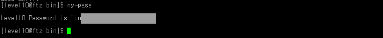 level10 권한을 얻었으니 my-pass로 level10의 패스워드를 확인할 수 있다.