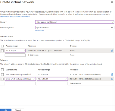 이 때, 가상 네트워크의 네트워크 주소는 16바이트, 서브넷의 네트워크 주소는 24바이트로 설정한다.