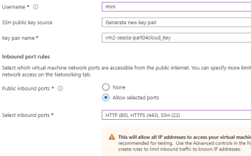 그리고 Select inbound ports는 HTTP, HTTPS, SSH의 3개를 선택해준다.