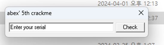 exe 파일을 실행하면 위와 같이 시리얼을 입력하게 되어있고, 입력 후 시리얼이 틀렸다는 문구가 뜬다.